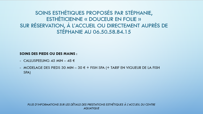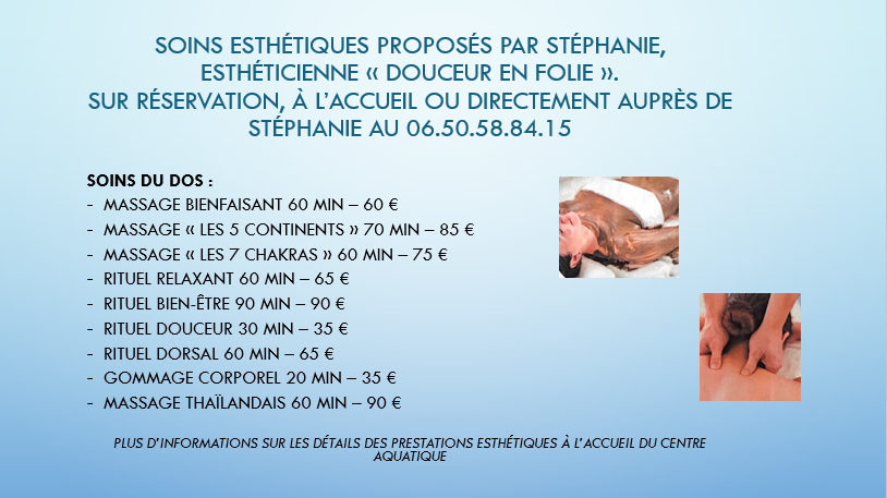 Vous y trouverez 4 bassins dont un de 25 mètres entièrement découvrable, un bassin ludique, un bassin d' apprentissage, un toboggan de 43 mètres et 3 pentagliss.