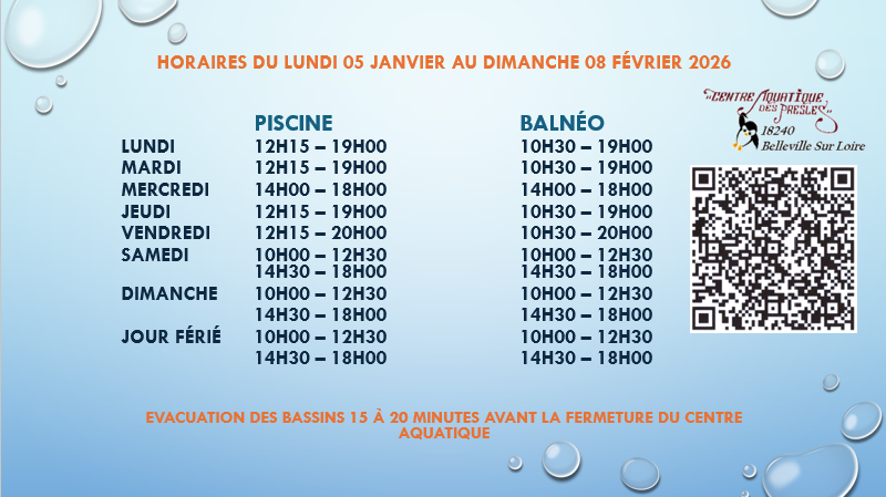 Le Centre Aquatique des Presles est un véritable lieu de détente et de plaisir à Belleville Sur Loire.